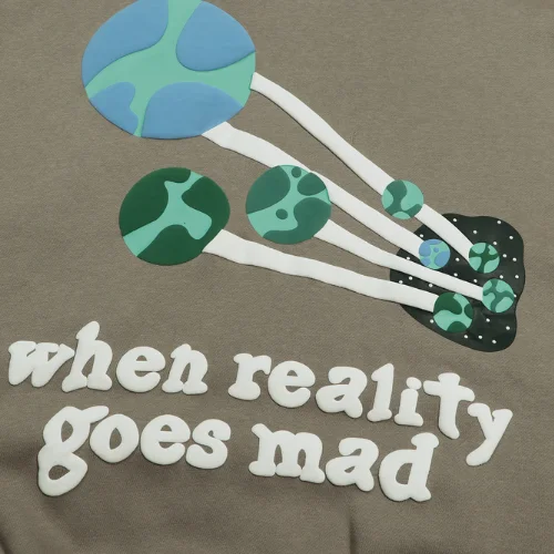 The Broken Planet When Reality Goes Mad Hoodie Grey is a bold unisex piece featuring the “When Reality Goes Mad” print on the front. Made from 100% cotton, it includes a drawstring hood, ribbed cuffs, and hems for a perfect fit. Perfect for casual wear or layering in cooler weather. Shop now at goatstreetvibe.com.